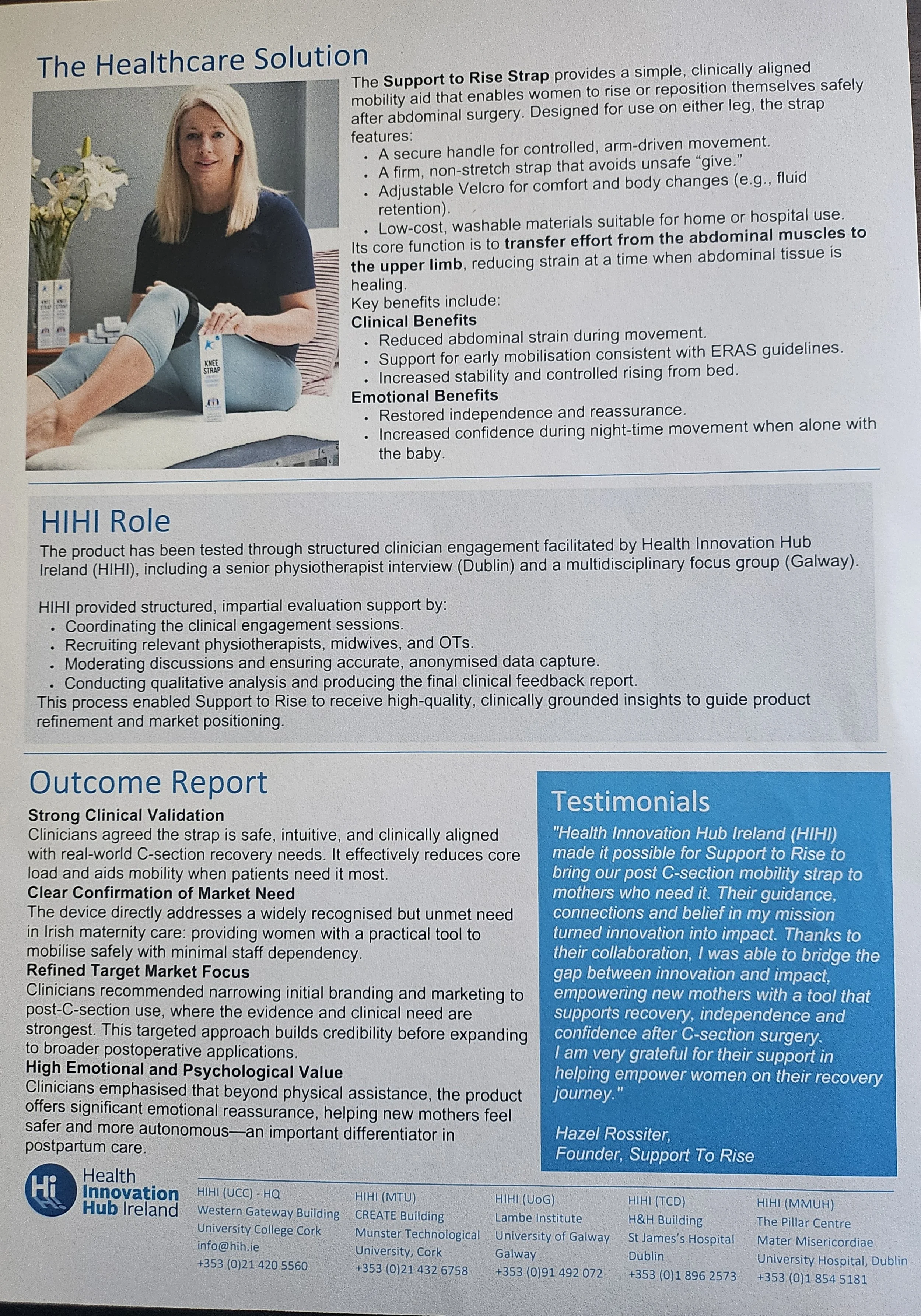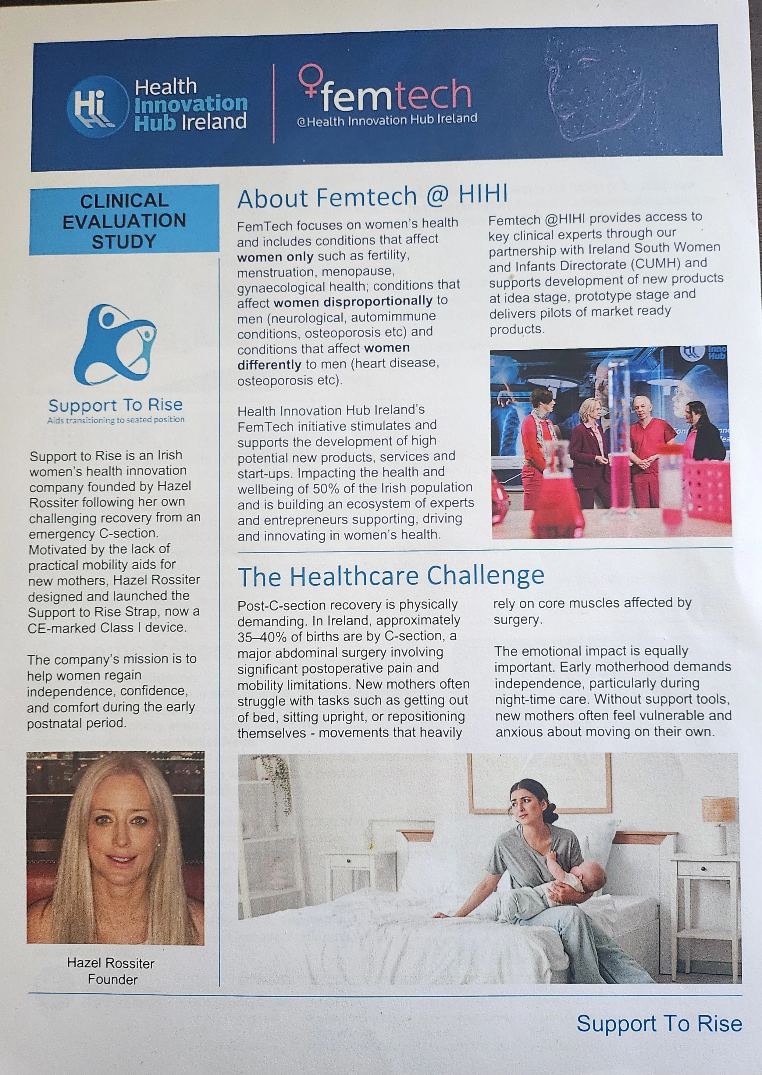 Read the Support to Rise Clinical Evaluation Study with the Health Innovation Hub of Ireland (HIHI) gaining the insights from Clinicians, including Midwives, Occupational Therapists and Physiotherapists.