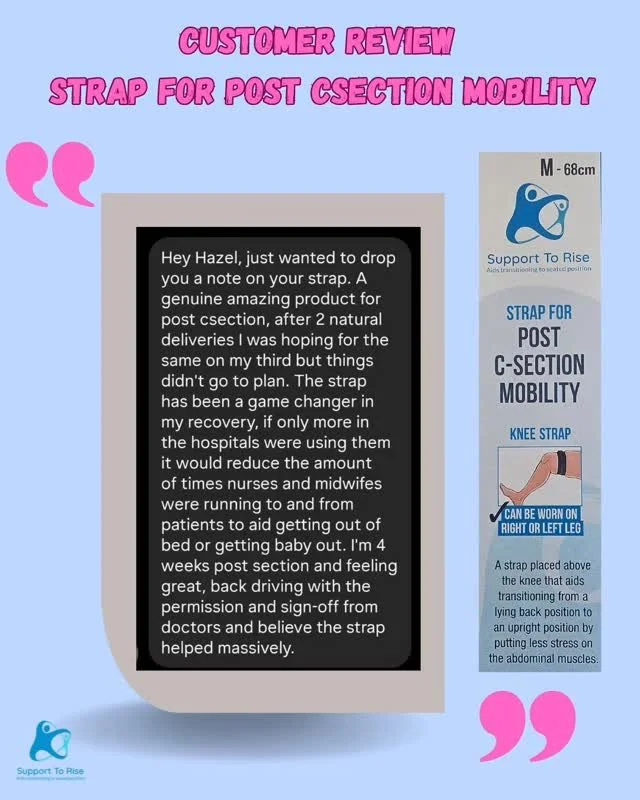Increased Mobility: The Strap helps to improve your mobility, to help you rise up out of bed with less pressure to the abd which is important after major abdominal surgery such as a caesarean section or hysterectomy.