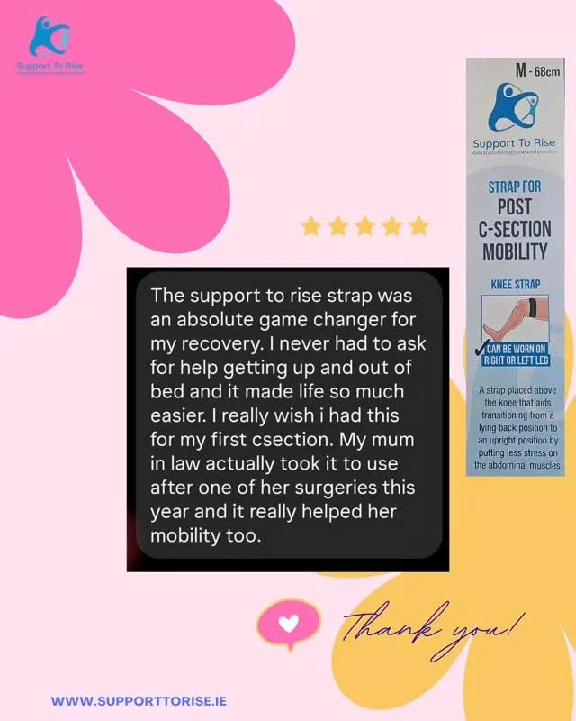 Increased Mobility: The Strap helps to improve your mobility, to help you rise up out of bed with less pressure to the abd which is important after major abdominal surgery such as a caesarean section or hysterectomy.